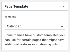 . Select the “Calendar” template and click Publish or Update.